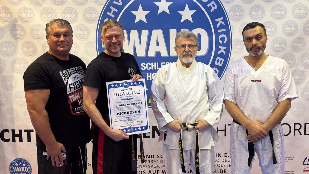Am 06. Dezember 2025 fand in Kellinghusen die Schwarzgurtprüfung im Kickboxen unter dem Dach der WAKO statt. Vorausgegangen waren mehrere intensive Vorbereitungstage, in denen Technik, Theorie und Selbstverteidigung noch einmal gezielt vertieft wurden. Die Prüfung selbst bildete den Abschluss dieser Vorbereitungsphase und stellte – wie immer – hohe fachliche und persönliche Anforderungen an alle Teilnehmer. Die Prüfung wurde von Shihan Geert Lemmens, Hanshi Himmet Kaysal und Sensei Mesut Celik geleitet. Die Atmosphäre war konzentriert, sachlich und zugleich fair – genau so, wie man es sich für eine Prüfung auf diesem Niveau wünscht.
